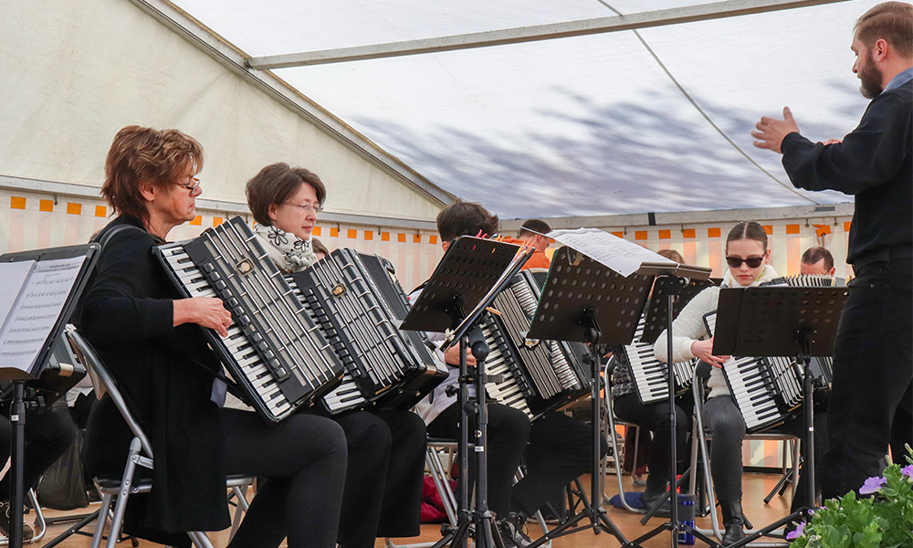 Im Festzelt konnte ab 9 Uhr dem Akkordeonorchester Leuna gelauscht werden. Die Dorfmusikanten vom Musikverein Altranstädt schafften ab 10:30 Uhr eine ausgelassene Stimmung im Festzelt, so das mitgesungen und geschunkelt wurde. Das abwechslungsreiche Programm aus traditionellen Volksliedern und modernen Klassikern der beiden Künstlergruppen kam sehr gut beim Publikum an.