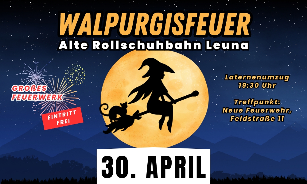 Ich freue mich, wieder gemeinsam mit den Kameradinnen und Kameraden der FFW Leuna und den Stadträtinnen und Stadträten, das Walpurgisfeuer mit dem Fackelumzug (19:30 Uhr ab der Feuerwehr Leuna) eröffnen zu können.